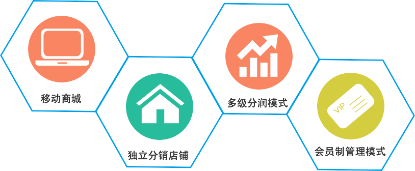 集“移動商城+獨(dú)立分銷店鋪+多級分潤模式/會員制管理模式